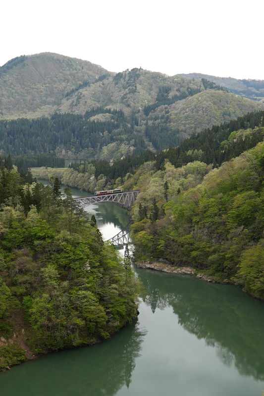Tadami Arch Bridge May 写真撮影:2025/May/2<元写真> 福島県三島町にある第一只見川橋梁はJR只見線の代表的な景観で、道の駅からビュースポットまで遊歩道が整備されています。ただし列車の運行が少なく、早朝から夕刻までの撮影チャンスは一日に8回ほど。 撮影時は天候が今ひとつだったのを無理やり明るくして、チルトレンズ風レタッチを加えています。 ダウンロード→ 26may.pdf (288KB) |