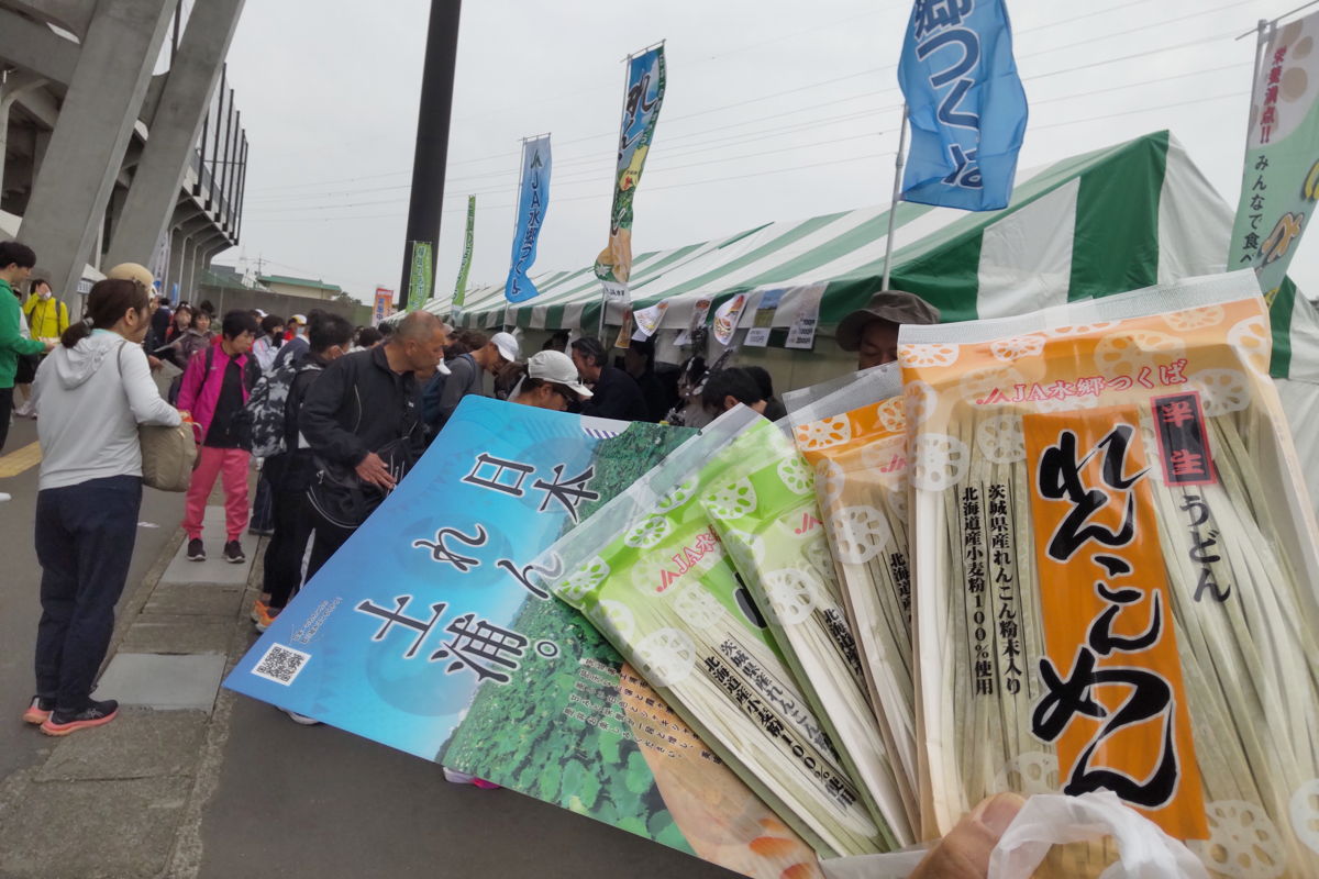 四年連続参戦となるかすみがうらマラソン。去年と同じように、列車遅延の妙で却って予定より一本早く常磐線土浦駅に到着できた。余裕を持って写真を撮り回ったり、出店のれんこんめんを買ったり。荷物を預けてからトラックでウォーミングアップを開始すると、う〜ん、筋肉が張っている。先週末に自転車で駆けずり回った疲労が残っている状況で、水曜に「刺激入れだ」とスピード走をしたのが失敗だったか。でもスタートしてしまえばそんなものは雲散霧消するものだと思っていた。シューズは使い古しつつあるFuelCell RC ELITE v2。