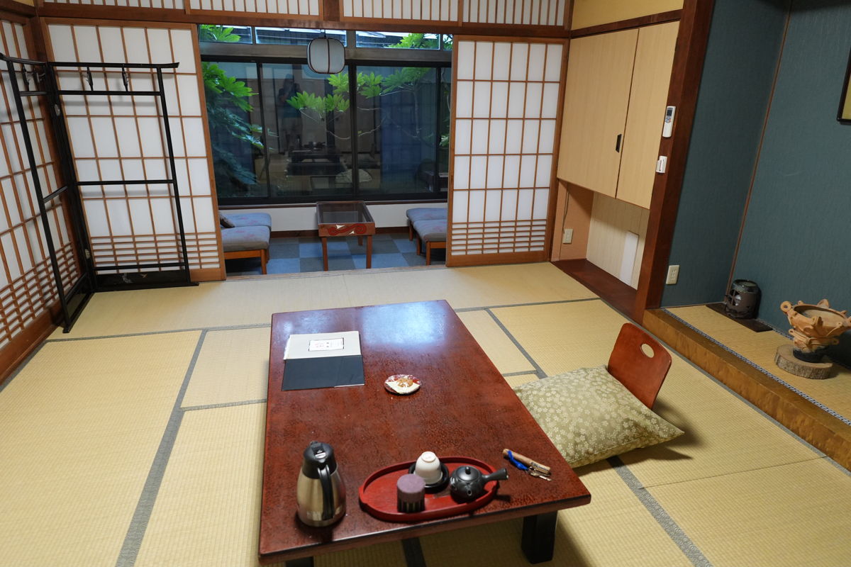 シアトル出身のタイラーさんが若旦那を務める事で有名な宿だが、休前日でなければ一人でも泊まれるし、案外リーズナブル。和室の奥のテーブルと椅子のあるスペース(広縁)を指差し「はいここっ、ここ好きっ!」と、ざつ旅めいたハイテンション。上品で驚きのある料理が次々運ばれてくる夕食、手作り感のある露天風呂を堪能し、やっと畳で大の字になって疲れ切った心身を休めさせる。