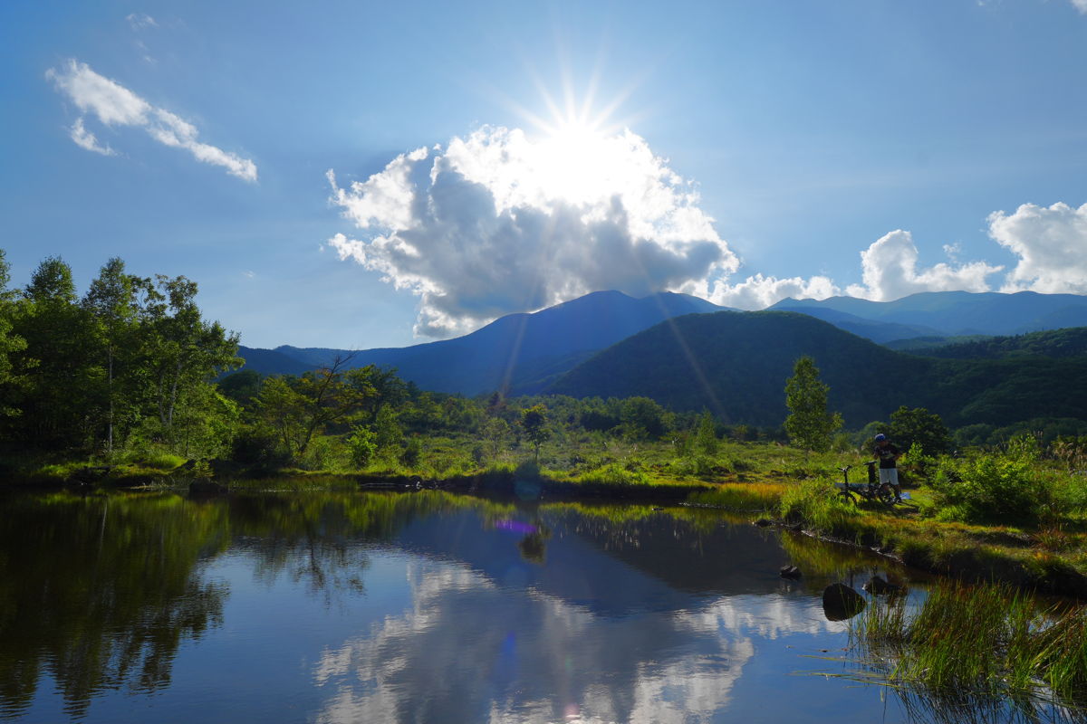 標高1,450m。観光センターでバスを降り、小径自転車カラクルSの輪行を解く。さすがに下界の蒸し暑さは無いが、年々気温が上がっている気がする。ライバル大会?ツールド八ヶ岳の疫病中断が長かったため、ひと足お先に第40回を迎えた乗鞍ヒルクライム会場。受付を済ませつつ、居合わせた同宿のK原さんに「まいめの池」まで同行して貰う。広大な高原に来たぞ感が素晴らしい景勝地だ。