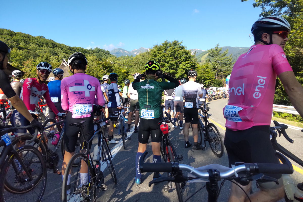 自分のスタート時刻は後の方なので、仲間をあらかた見送ってまたゆっくりしてから宿を出る。標高差170mと程よいウォーミングアップで会場に着くと、筑大サイクリング部同期のM屋君に会う。毎年居る筈なのになかなか会えなかったんだ。互いの近況報告もそこそこに、準備を進めねばなるまい。気持ちはもう満足しているけれど。