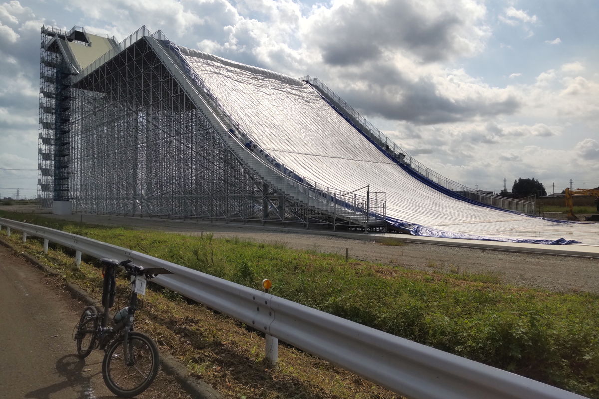 ジャンプ台建設現場CPは田園地帯に突如現れる巨大構造物! 山形県の某タワーマンションめいたインパクトがある。付近の猿島郡は「さしま茶」の産地とのことで、今度買いに来よう。最高得点85点CPの八龍神塚古墳で境町エリアをコンプしたところで、残り1時間半を切る。ここから向かい風となる、切ないCP空白地帯が頑張り所だ。