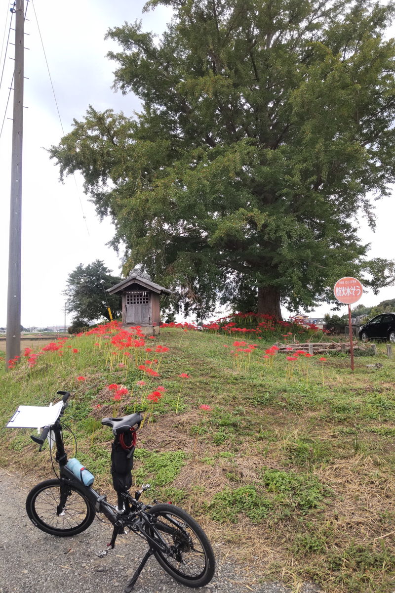 五霞町は利根川の南西側でありながら茨城県で、かつては下総国葛飾郡だった。その証拠に香取神社がある。現代は多数の工場誘致に成功し裕福らしいね。権現堂川を西端とし、ちょっとした彼岸花スポットを見つつ、ちょうど1時間でエリア全CPをコンプ。ここから次の境町エリアへは国道4号バイパス新利根川橋を渡る。車道を走りたいが自転車禁止、歩道通行となった。