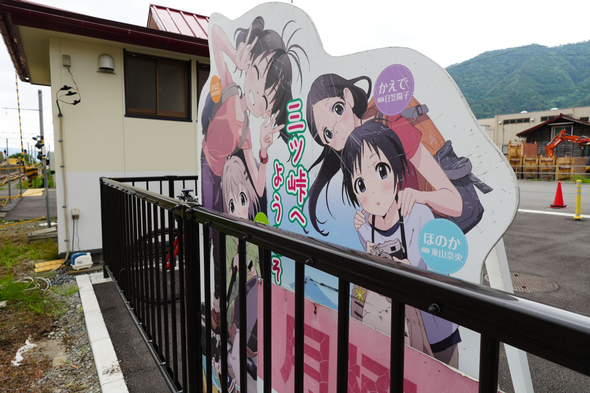 午前10時半、富士急行線の三つ峠駅に降り立つ。かつてはヤマノススメファンで賑わった?この駅も、今は等身大パネルが駐車場の隅で後ろ向きに放置さてれおり悲しい。