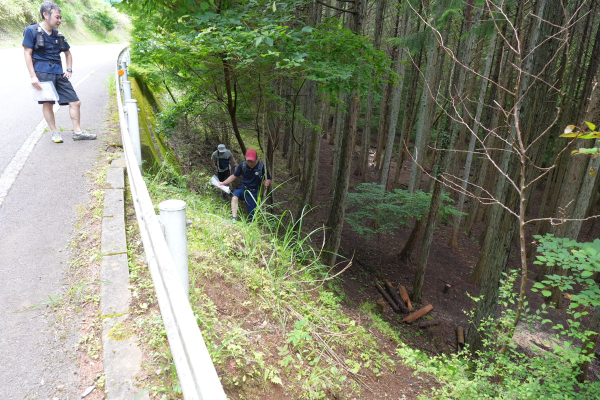 赤坂駅付近からの後半は登り基調となり、さらに休憩や歩きが多くなる。ちょっとヤマをススメてみるが、やはり無理はしない方針。終盤に大学の裏を回る際、オフトレイルに入っていくのを面白がって放っておいたらロストしてピンチになった。崖をよじ登って道路に復帰。これぞロゲイニングって感じがする。