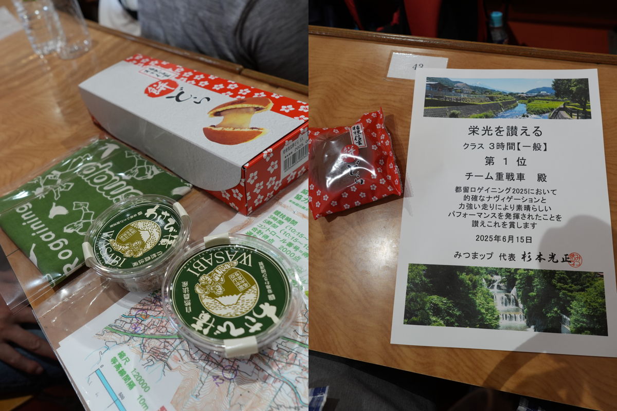 にわか雨が降り出すタイミング、無事3時間以内に帰着できた。走行15.5kmぽっちだが、部門7チームの中で一位。ガチなチームはみんな期待通り五時間クラスに行ってくれたようだ。これでチーム重戦車は5戦全て入賞をキープしているが、そこはあまり拘らないようにしたい。楽しく回れて無事是名馬が良い。二位・三位チームの方が屈強そうなんだけど、解析するに鉄道利用と山岳アタックで時間を食いすぎた印象だ。